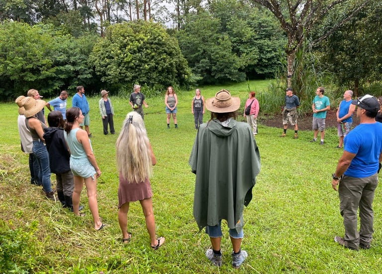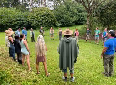 I, Tracy Matfin, graduated from UC Berkeley with a degree in Environmental Science. After receiving a secondary science teaching degree I went on to teach high school science for ten years in Castroville, California. From there I moved to Portland Oregon where I attempted to start a community with a previous partner. Our efforts did not succeed, but a lot of learning happened in the process. My next venture was a community on the Big Island of Hawaii. Here I worked with six others and we co-founded La'akea Community in 2005. La'akea is still going strong and it is my home. Living a daily experiment in finding balance and harmony with each other and the land has taught me much. Along the way I've picked up many communication and facilitation skills which I use when I'm working with others.